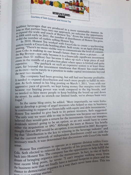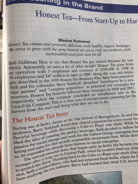 Solved Case Study Honest Tea From Start Up To Harvest And Chegg Com